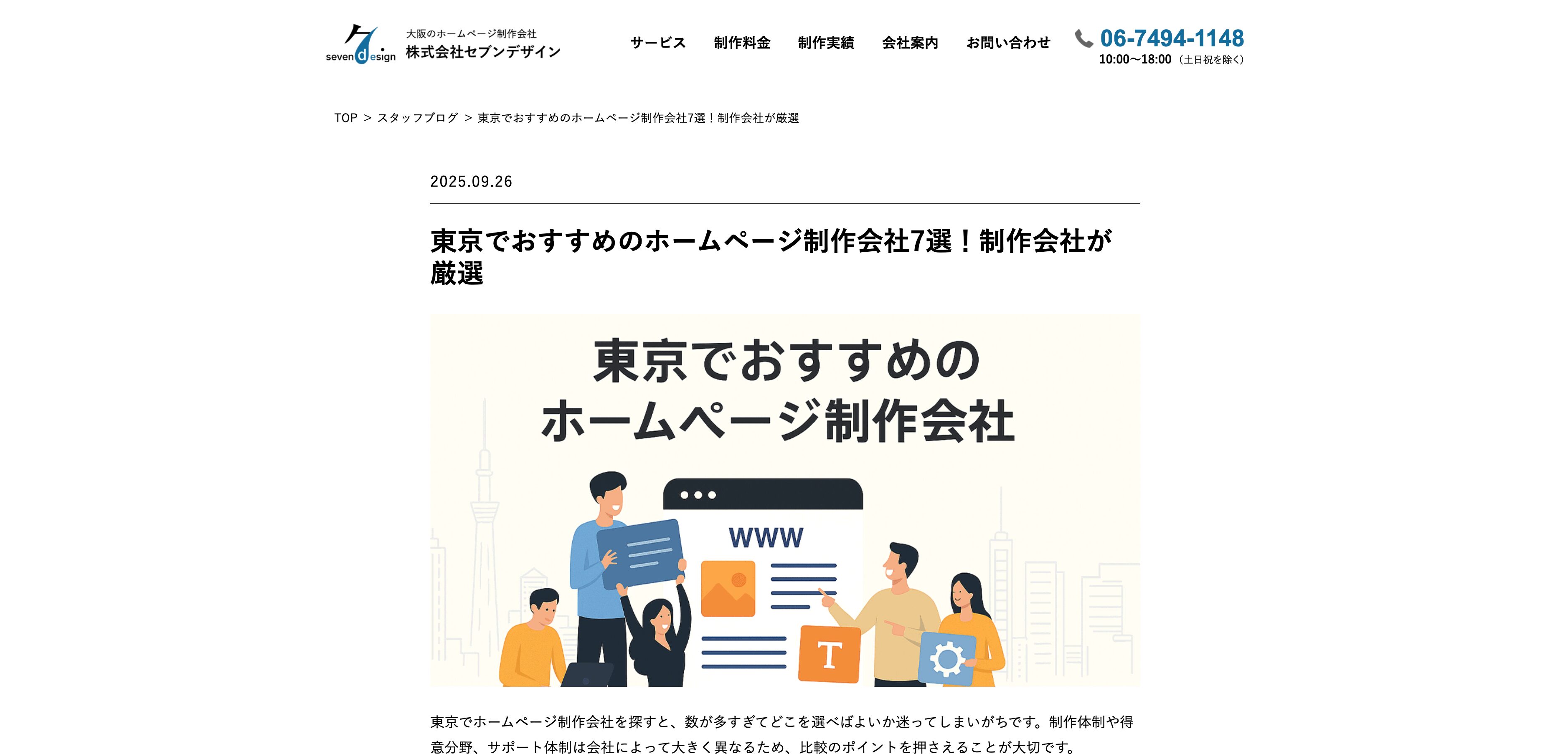 株式会社セブンデザイン様のブログにて「東京都でおすすめのホームページ制作会社7選」に掲載いただきました。
