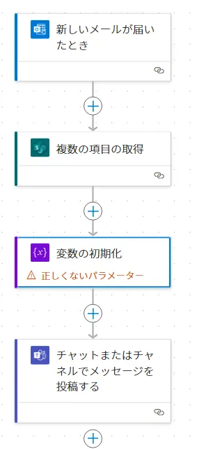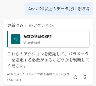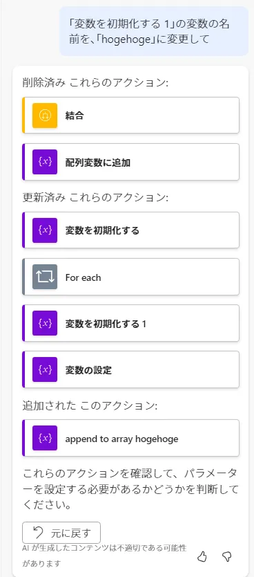仮に同じ種類のアクションがなかったとしても、単純な設定(メールアドレス等の入力や、「はい」「いいえ」を選択するだけの項目)であれば、Copilotに指示するよりも、手で直してしまった方が早いです。