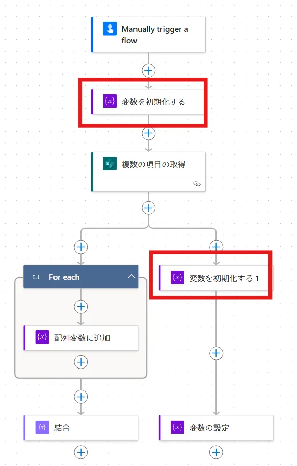 • 「変数を初期化する 1」ではなく「変数を初期化する」の方の名前を変更してしまう