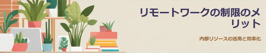 リモートワークの制限が、社内資源の活用促進・業務効率化に繋がる旨を図解して