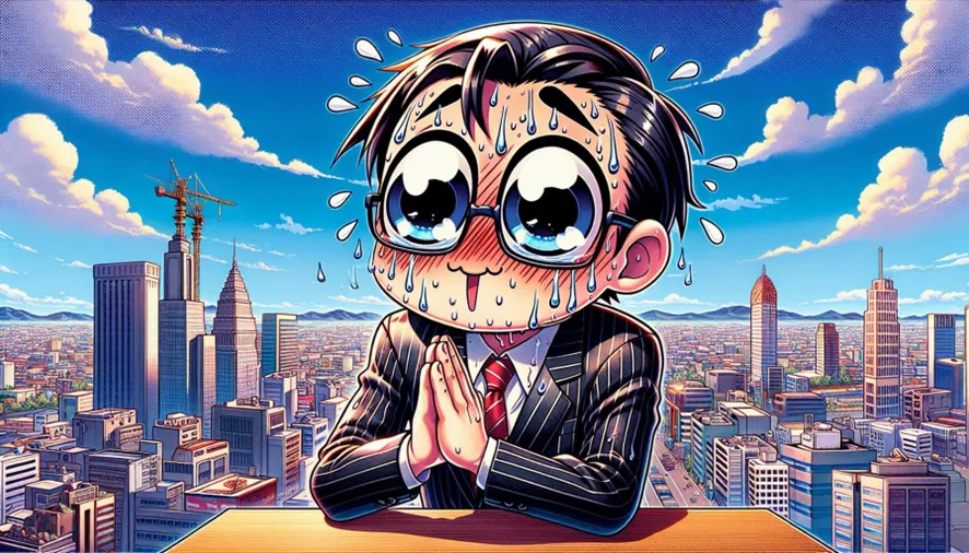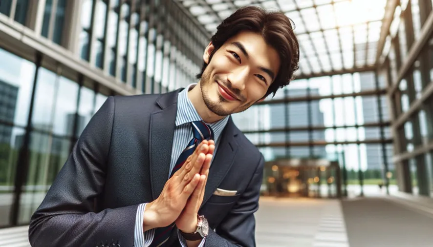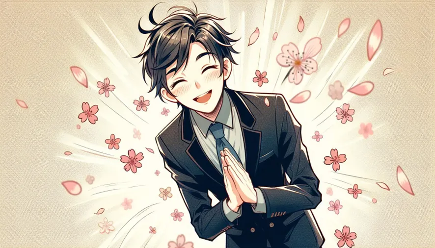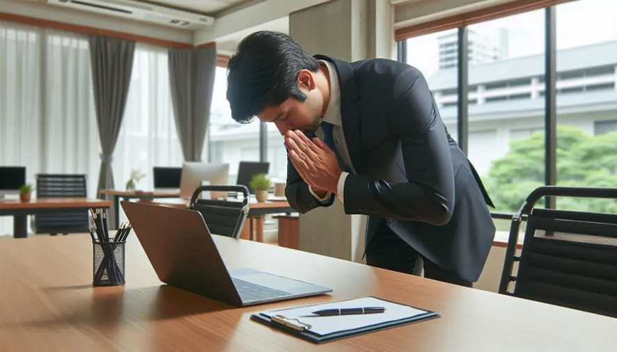 ビジネスマンがお辞儀しているアニメ調のイラスト作って