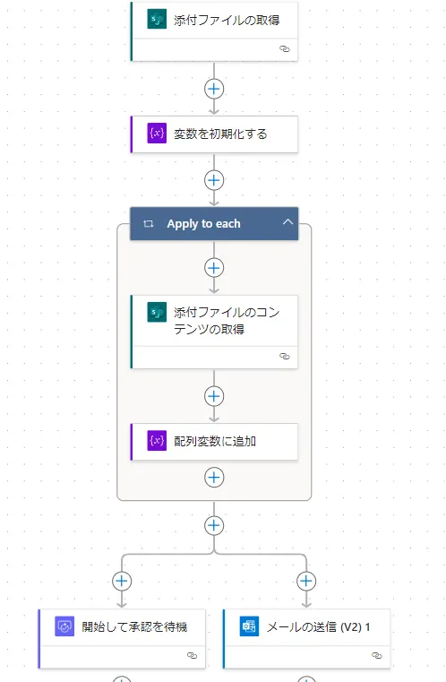 添付ファイルの数だけ繰り返すよう、Apply to eachを活用すると、複数の添付ファイルに対応したフローが作成できます。