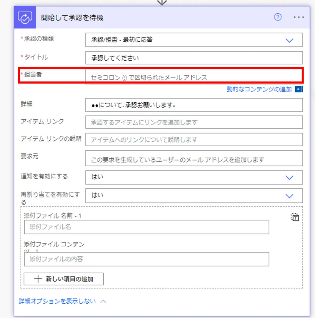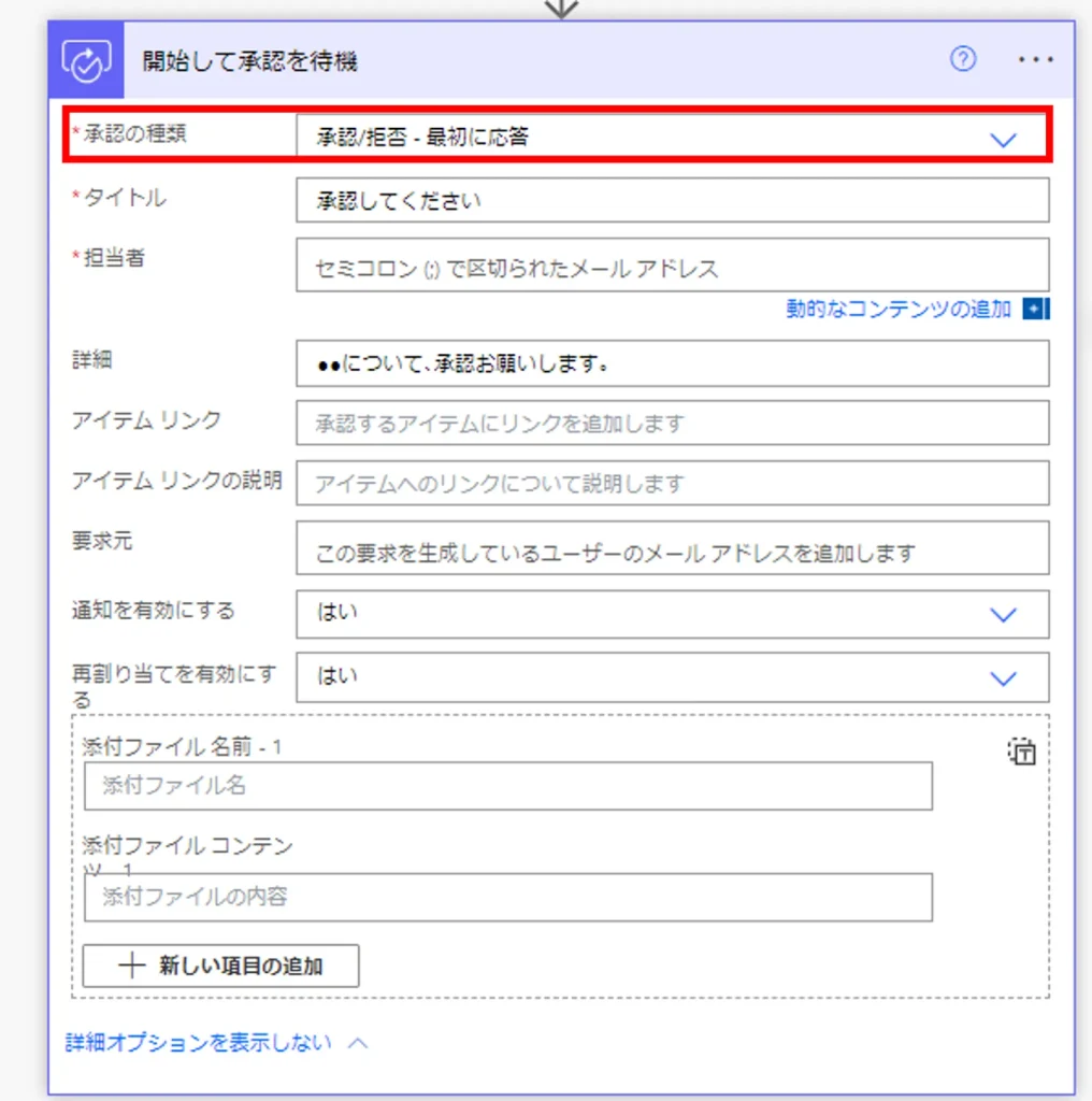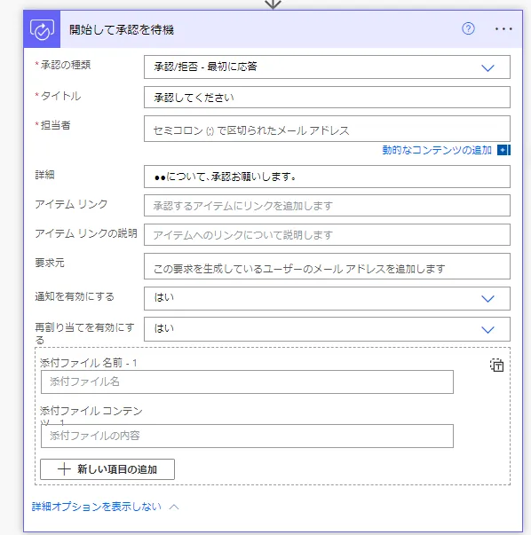 「開始して承認を待機」アクション内で考慮が必要な項目