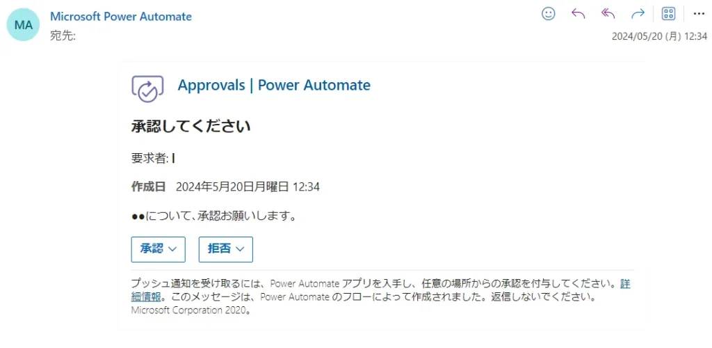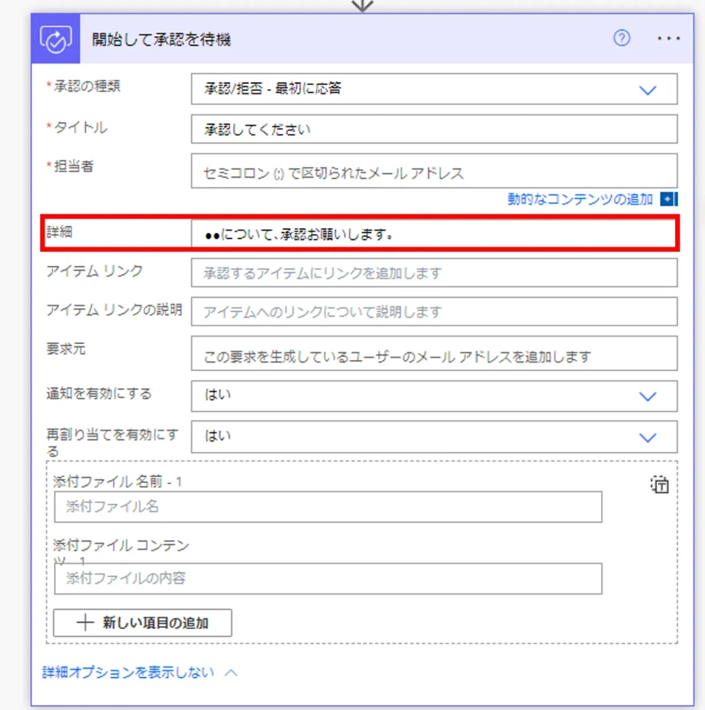 詳細には、承認してほしい内容についての具体的な情報を記載します。